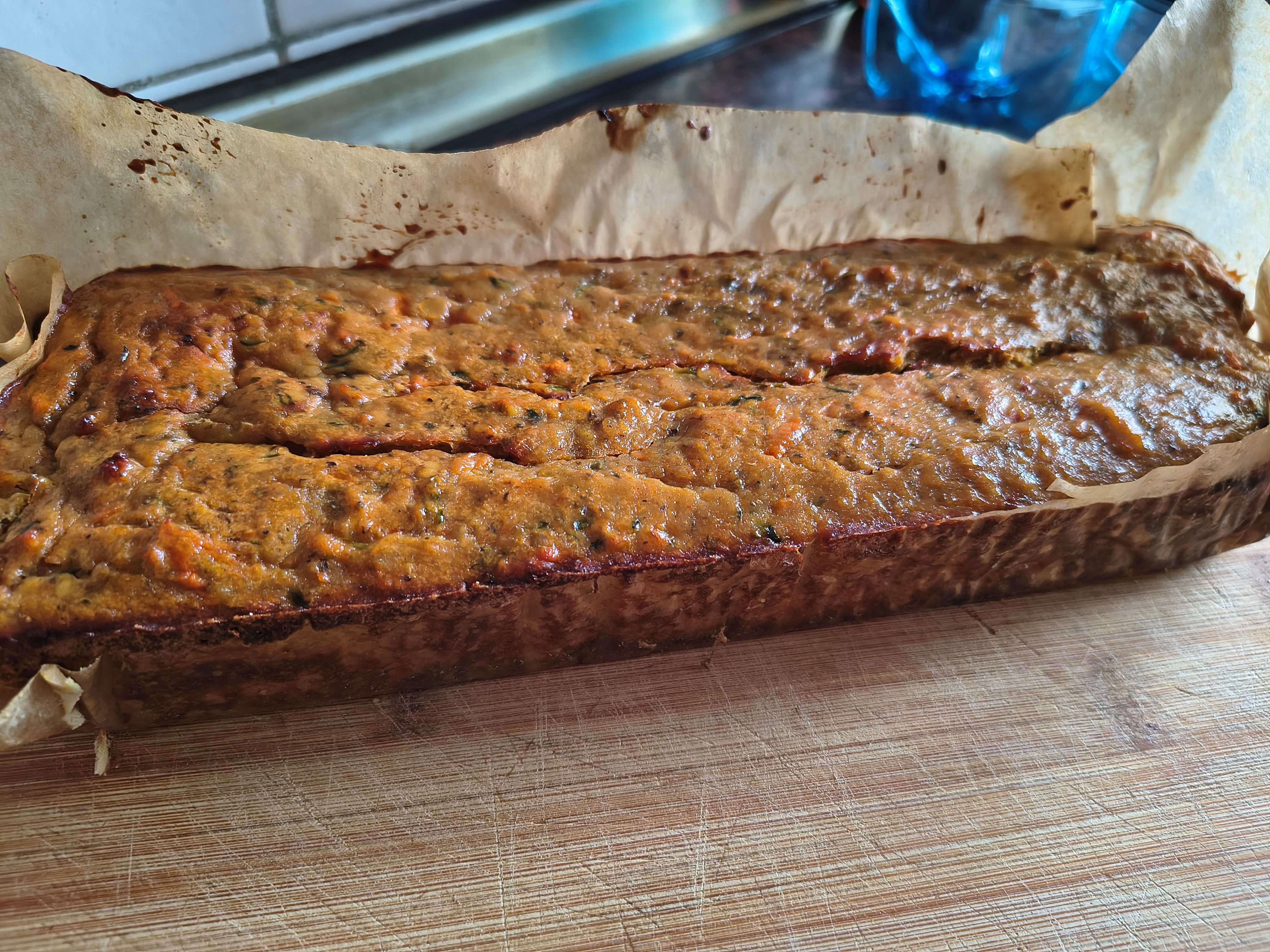 Cukinię i marchewki zetrzeć na tarce o dużych oczkach. Ważne: odcisnąć z wszelkich soków bardzo dokładnie i dodać do soczewicy. Dołożyć przyprawy i roztrzepane jajka, bardzo dokładnie wymieszać. Przełożyć do keksówki wyłożonej papierem do pieczenia, na wierzchu posypać pestkami z dyni lub słonecznika. Wstawić do piekarnika i piec ok 60 minut w 180 stopniach, grzanie góra/dół. Jeśli masa była zbyt wilgotna - wydłużyć czas pieczenia.